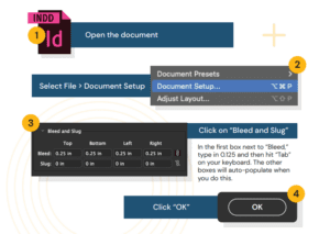 Nothing’s worse than an unsightly white line around the edge of your printing project – but thanks to Adobe InDesign, that’s an easy fix. Just follow these simple steps, and you’ll be able to add a bleed to any existing document in no time!