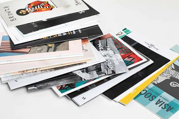 Magazines are available in different sizes ranging from small booklets (5.5″ x 8.5″) to large formats (8.5″ x 11″). We carry many varieties of cover stock, including multiple matte and cardboard finishes. The paper contained between magazine covers can be glossy or matte—the choice is really up to you. Either style of magazine printing suits digital or offset full-color graphics, or black and white. We typically bind magazines with glue to a spinal strip, known as perfect binding, or offer saddle-stitching through the center.